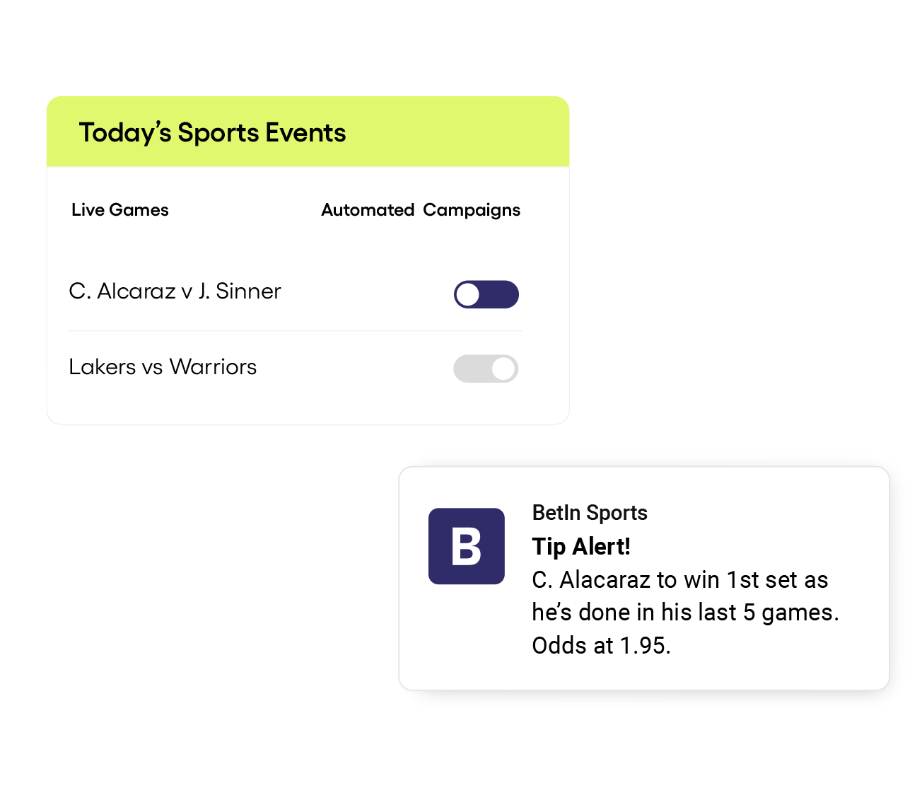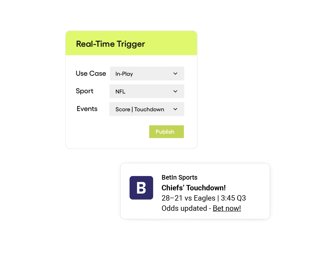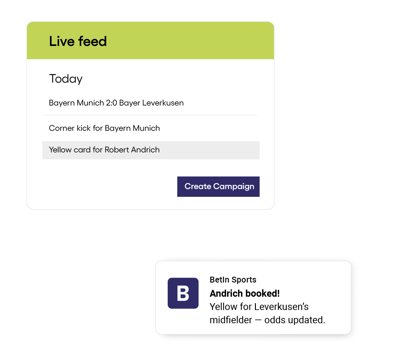Trigger timely, personalized in-play messages the moment key events, like goals or cards, happen.