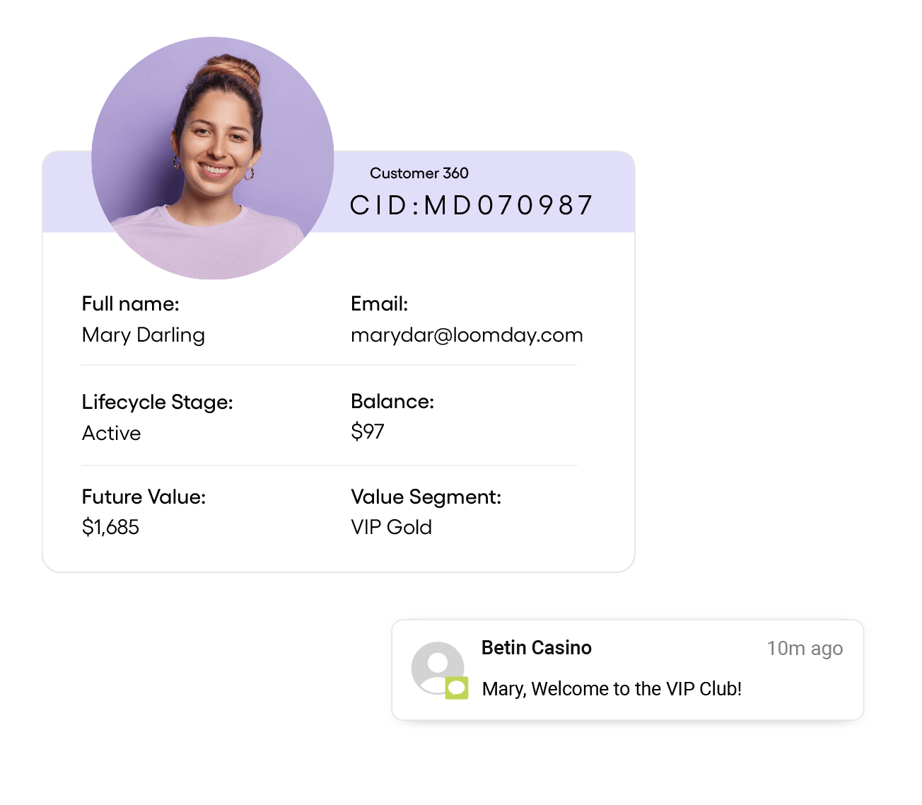 Engage players across email, SMS, mobile, web, and even straight into the casino lobby with personalized messages triggered automatically by behaviour, context, and value.