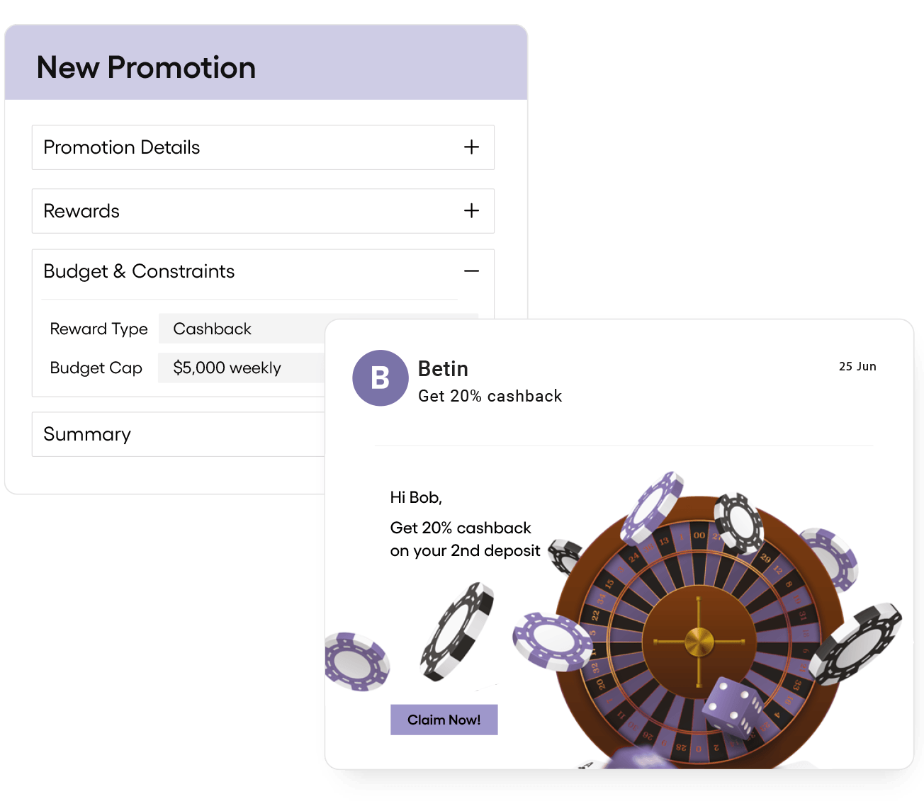 Leverage unified player data, including recent behavior, activity, and predictive models, to create promotions tailored to every player.