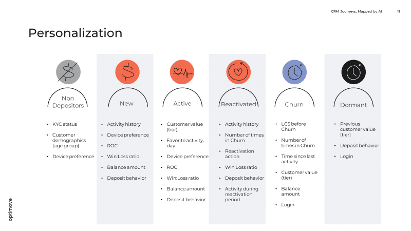 Resumiendo rápidamente, en la primera parte, Optimove identificó seis etapas del ciclo de vida (LCS) de los jugadores potenciales:
