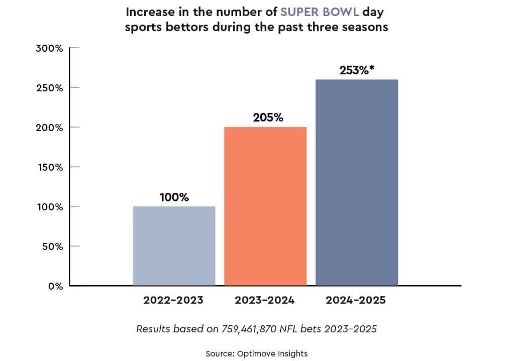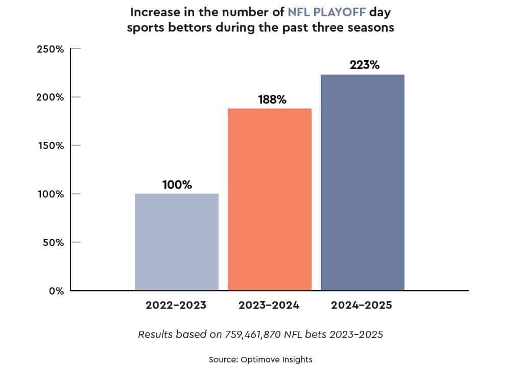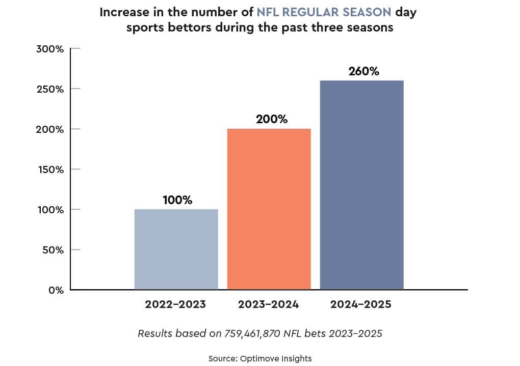 Centrándonos exclusivamente en los apostantes deportivos durante la temporada de la NFL, los datos recientes sobre apuestas de las últimas tres temporadas revelan un crecimiento significativo en todas las etapas de la temporada de la NFL. Los resultados se basan en más de 759 460 000 apuestas realizadas durante los partidos de la NFL en las últimas tres temporadas. El análisis es de Optimove Insights, la división de investigación de Optimove, la solución de marketing CRM n.º 1 para operadores de iGaming y apuestas deportivas.