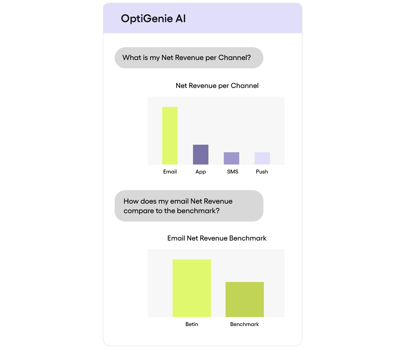 Get actionable recommendations from OptiGenie AI to optimize your marketing execution and grow NGR, deposits, and engagement.