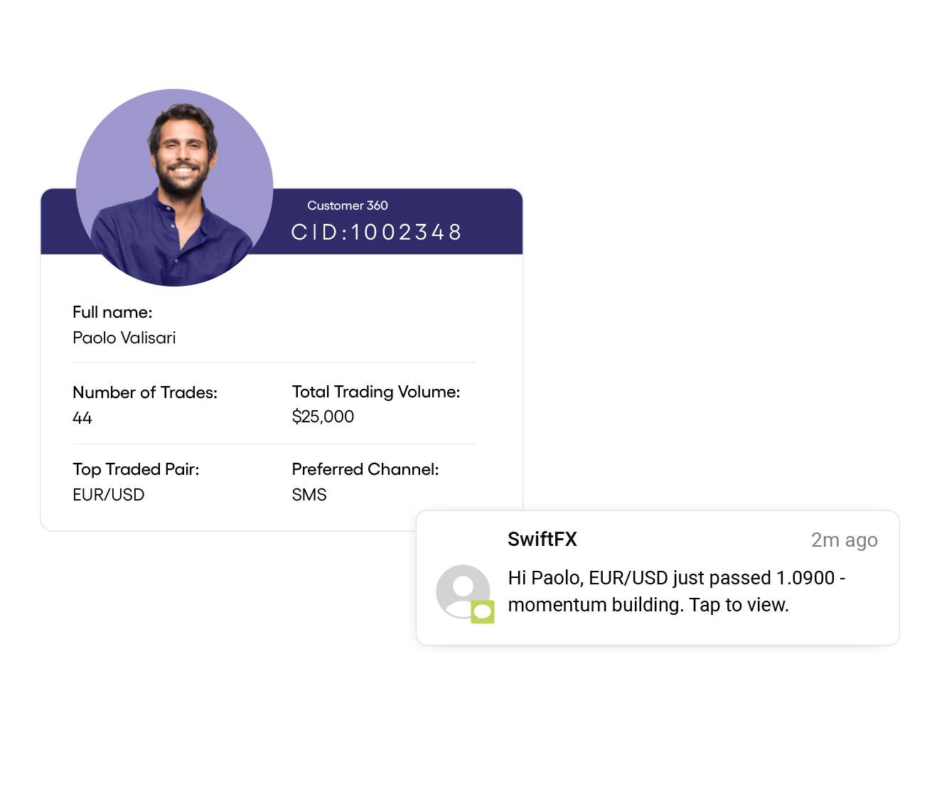 Unify trading activity, deposits, preferences, and real-time behavior into one actionable profile.