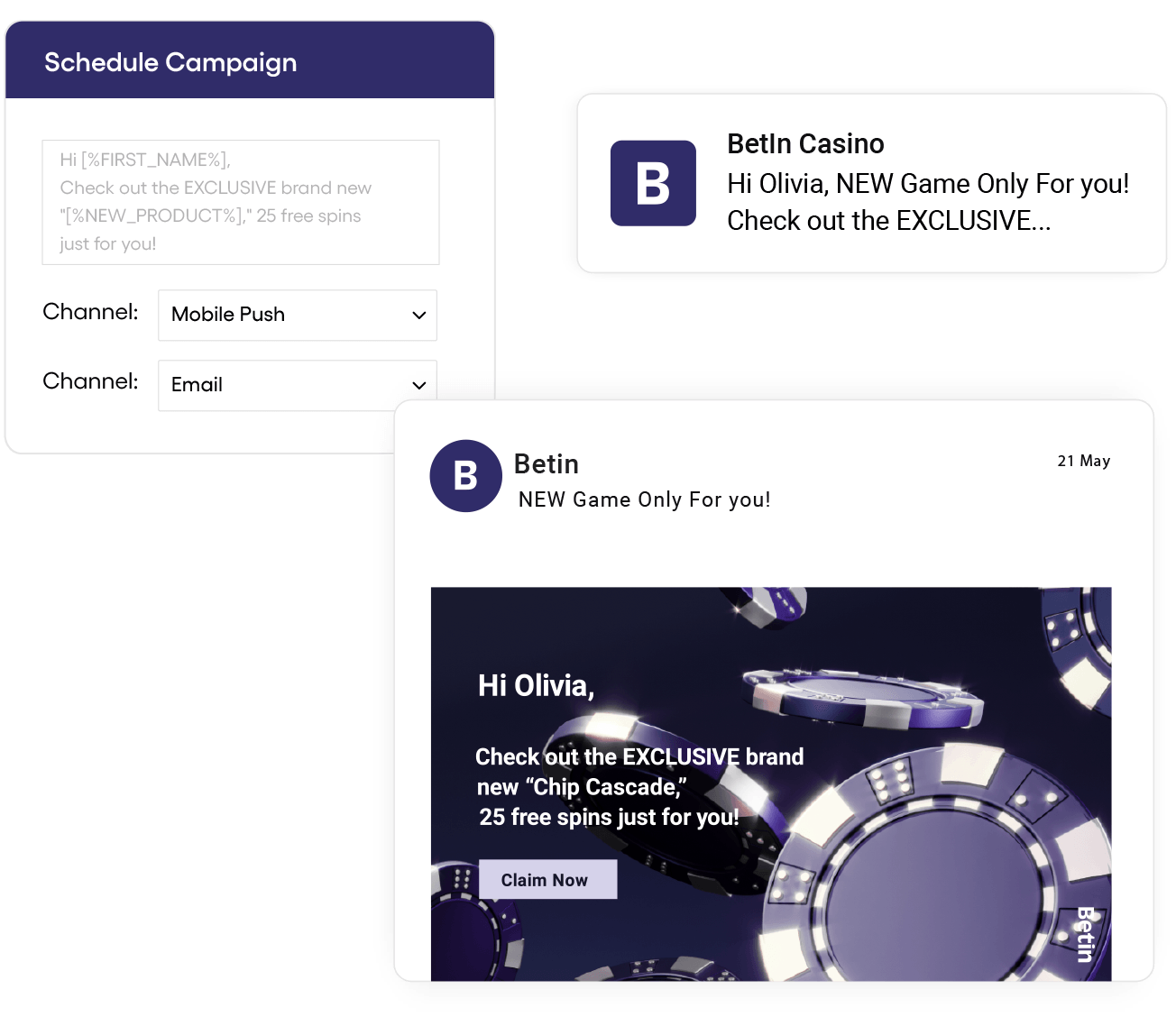 Native support for email, SMS, push notifications, and web personalization, plus easy integrations to additional channels—ensuring consistent cross-channel experiences.