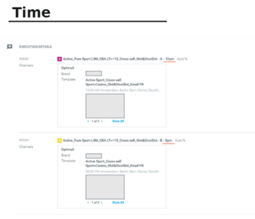 Outra operadora de jogos da Optimove enviou o mesmo modelo para os clientes em dois horários diferentes. Portanto, o modelo A e o modelo B eram idênticos; a única diferença é que o modelo A foi enviado às 10h e o modelo B às 20h.