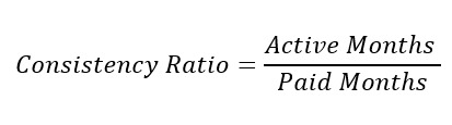 Analisámos a atividade do cliente no mês passado, mas será que os nossos clientes estão ativos durante os meses em que pagam? Dado o tipo de conteúdo, é possível que os clientes não tenham atividade todos os meses; por exemplo, no streaming de música, esperamos que o cliente utilize o serviço a cada poucos dias, mas no caso de conteúdo de viagens, os clientes podem saltar meses, pelo que a consistência do cliente é um KPI forte.