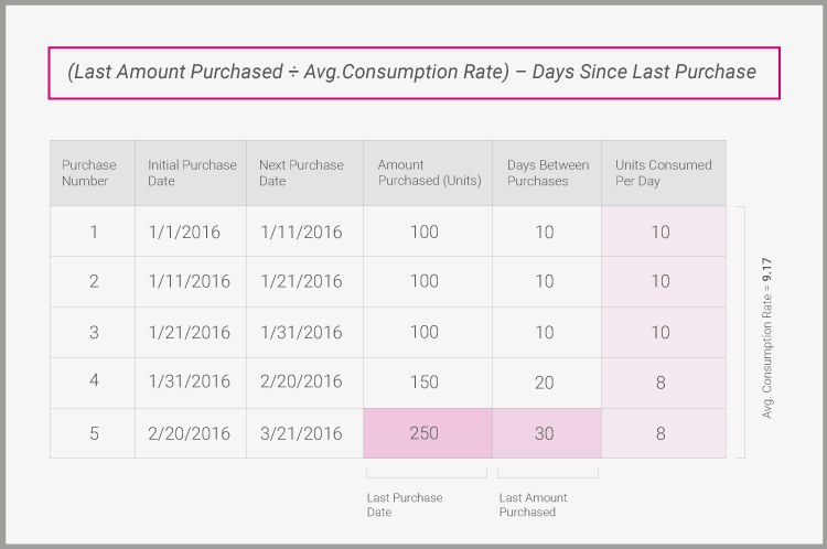 Para as empresas de comércio eletrónico que vendem esses produtos, pode ser muito difícil estimar a taxa de consumo dos seus diferentes clientes. As perguntas quando é que eles vão ficar sem o produto? e quando é que se espera que façam a sua próxima compra? continuarão a surgir.