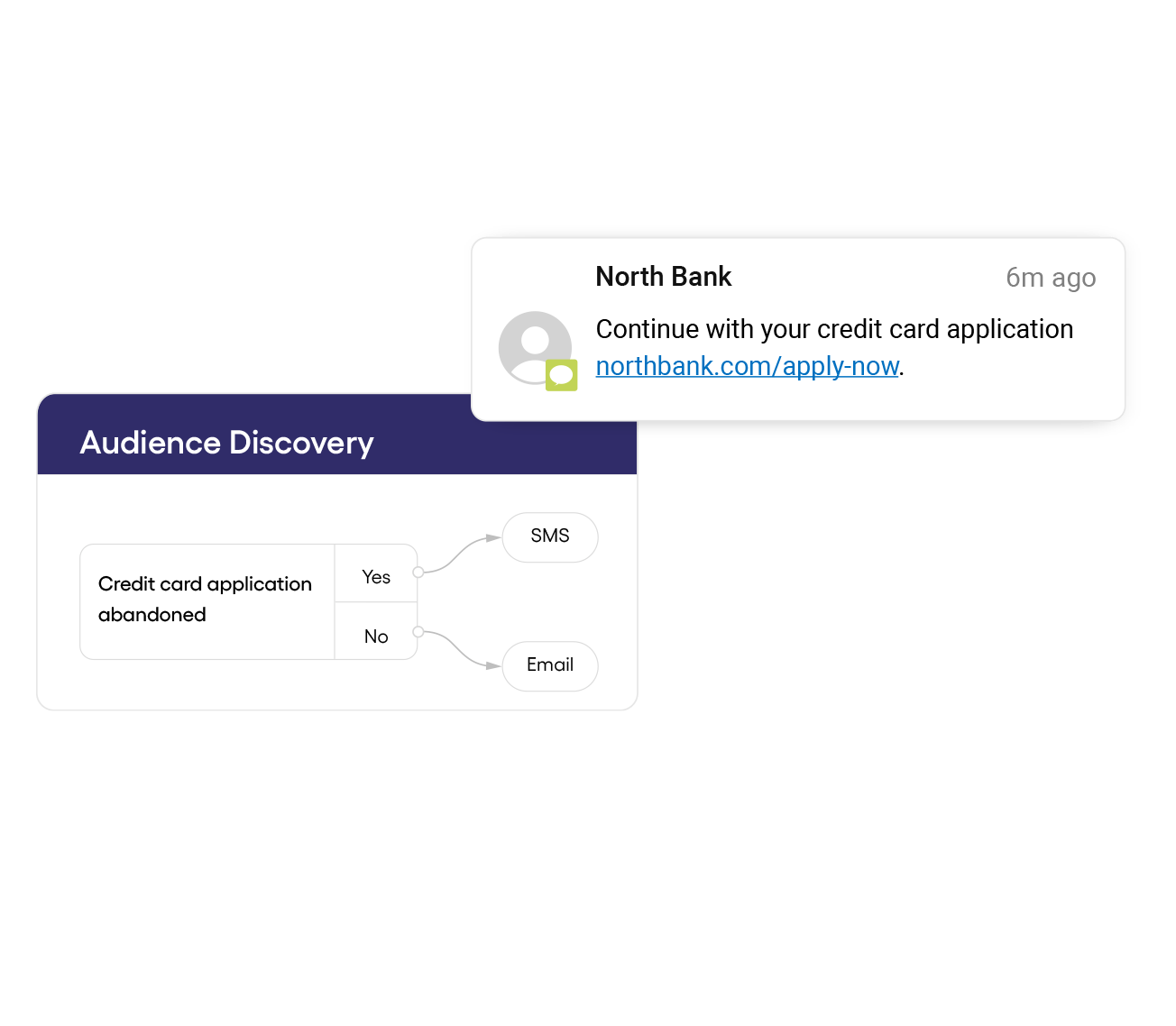 Crie jornadas unificadas que se adaptam em tempo real por e-mail, SMS, web e aplicativo, sem precisar alternar entre ferramentas ou equipes.