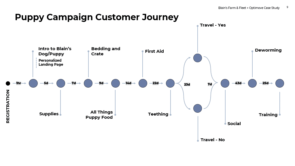Blain’s didn’t stop at the initial campaigns. They also designed a personalized post-purchase journey to ensure they remain top-of-mind for customers throughout their puppy’s life stages.