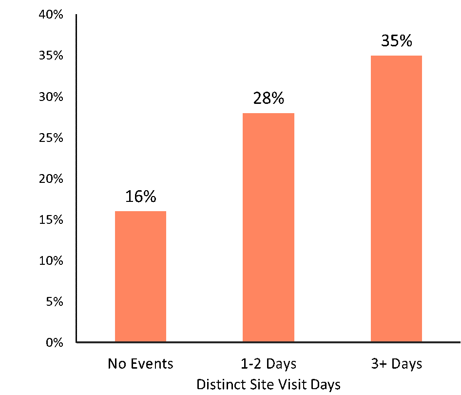 Site visitors are 75% more likely to purchase again (even though they haven’t purchased in the prior months.)