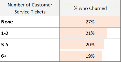 But again, this is a sample of actively purchasing customers with multiple purchases, looking at their lifetime customer service communications.