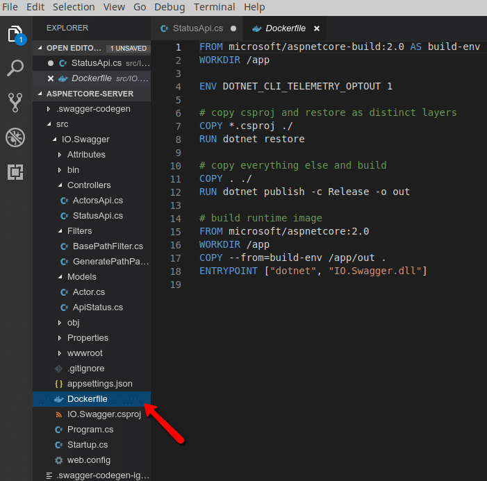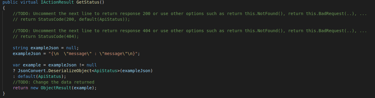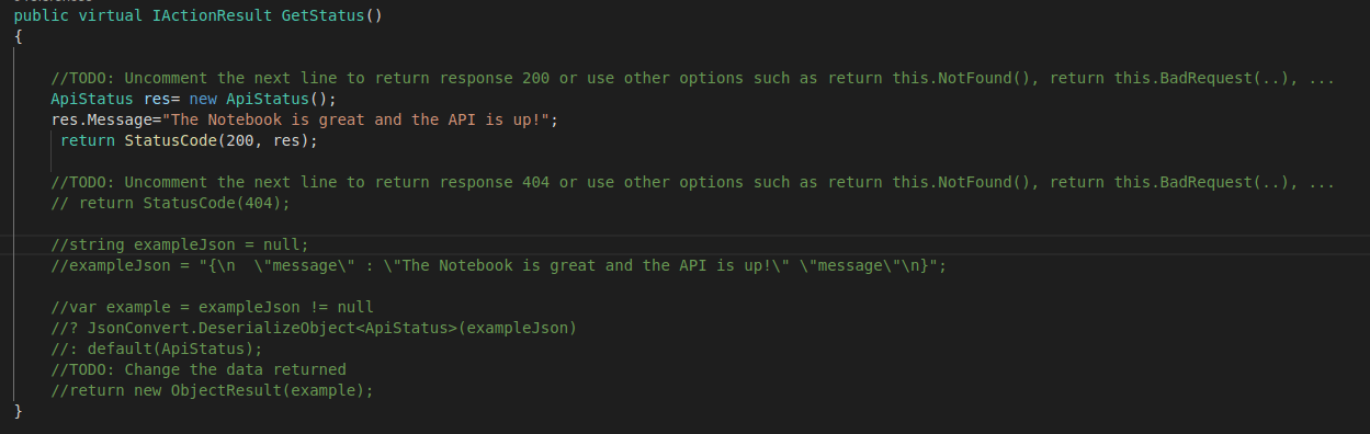 5. Go to /src/IO.Swagger/Controllers/StatusApi.cs