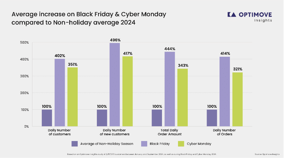 Optimove Insights analyzed data from leading e-commerce companies, tracking 2,457,670 customers between January and September 2024, as well as during Black Friday and Cyber Monday 2024.