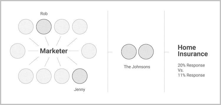 Targeting a single individual in a household may also prove to be problematic. Who is the decision-maker? Who is the influencer? What if one individual is the primary contact for life insurance while their spouse is the decision maker for the auto insurance?