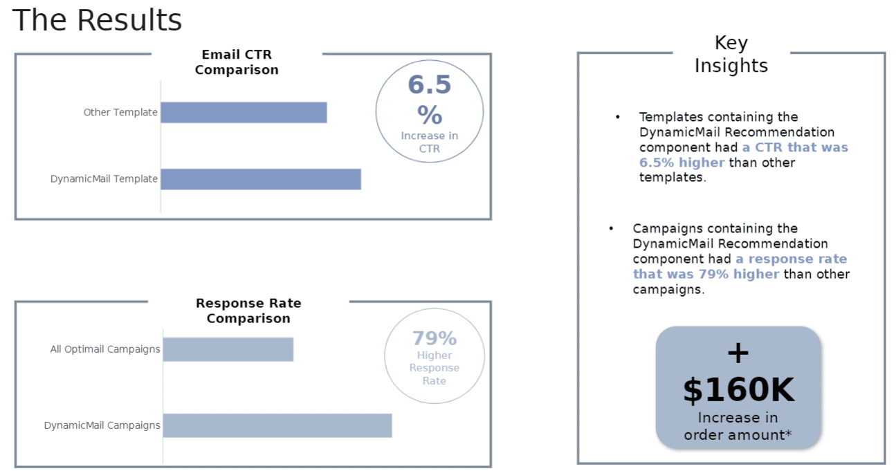 Overall, the personalized recommendations shown by DynamicMail resulted in more engaging and lucrative campaigns. Without this campaign, they wouldn’t have seen this uplift.