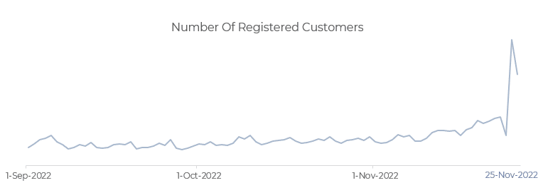 In 2022, the average number of daily registered customers was 1065 for the brand. On November 25th, on Black Friday, a whopping 6842 new clients created an account to snap up some incredible deals and discounts. That’s an increase of a massive 542% when compared to an ordinary day.