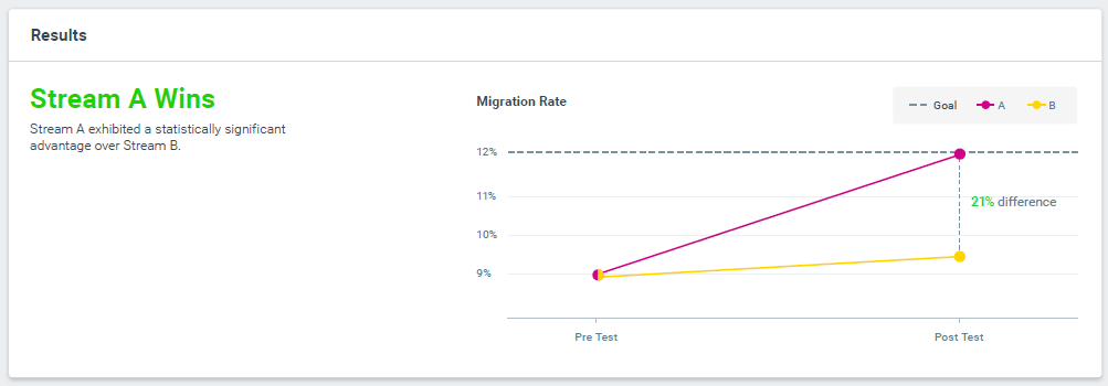Once you've reviewed your results and see the best-performing stream, you should shift the entire target group into the winning strategy (i.e., not only the percent who were targeted with this stream during the test).