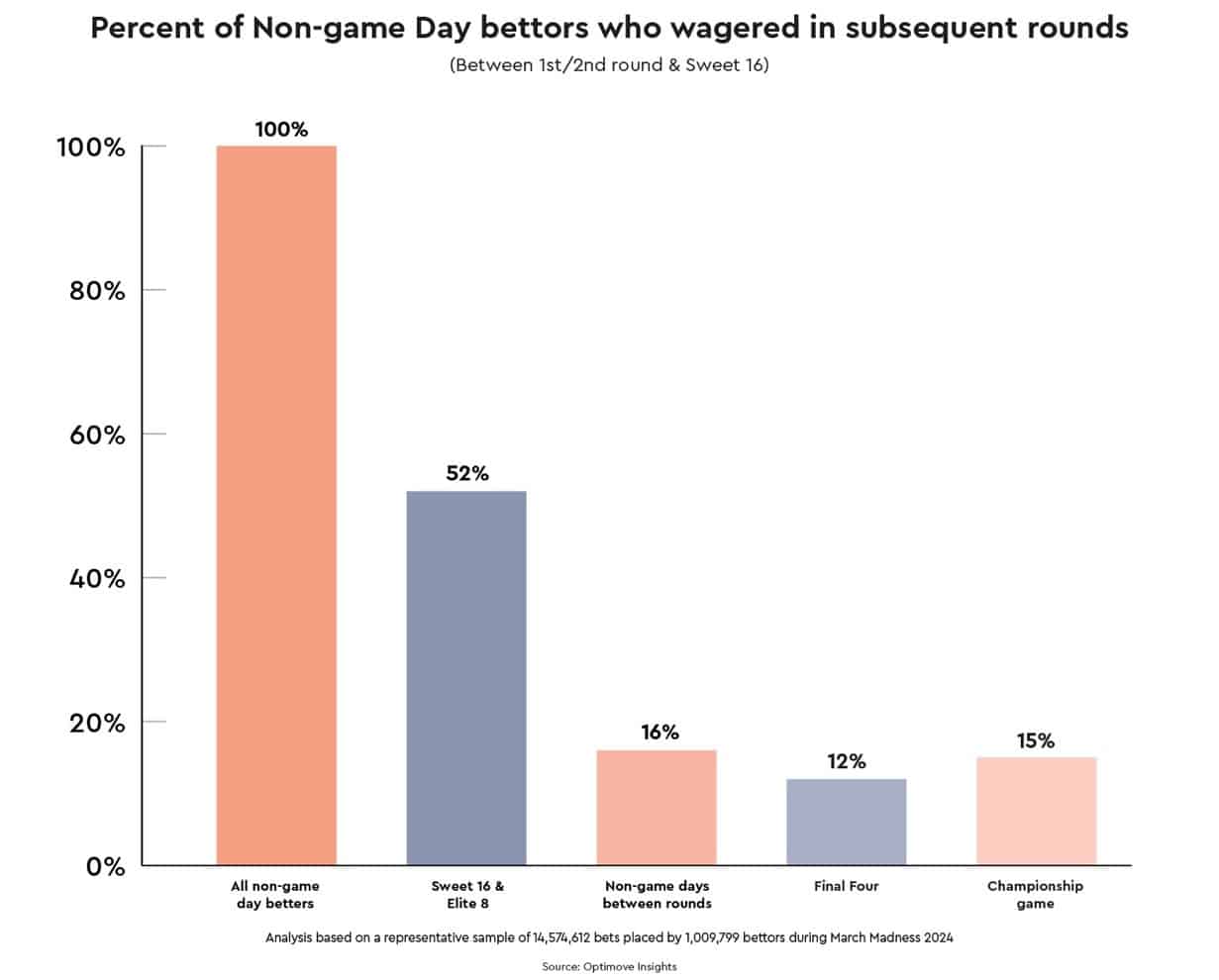 Bettors active during non-game days are more likely to continue betting in later rounds. Sportsbooks should: