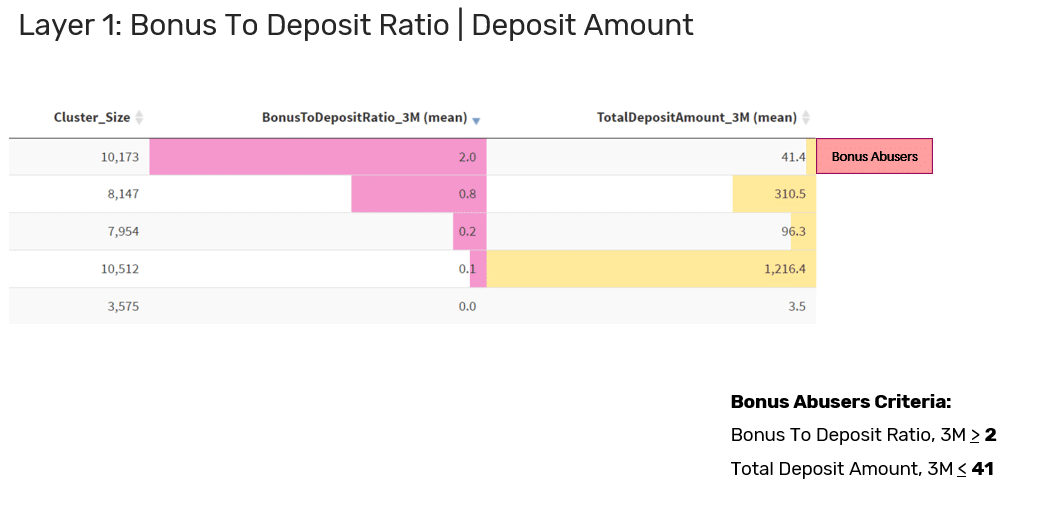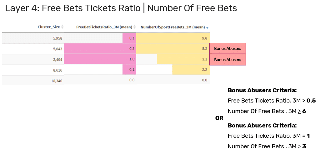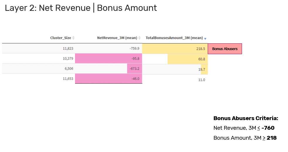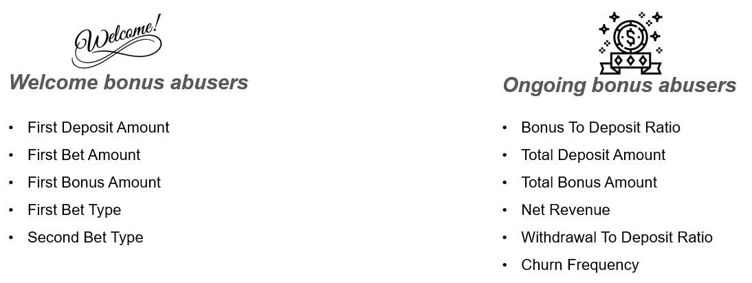 When the bonus abuser tends to frequently take advantage of bonuses and has a negative net revenue, it’s safe to flag this player as a bonus abuser.