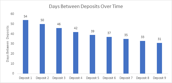 Don’t just take our word for it. Optimove data shows that as traders make more deposits, the time between each transaction shortens – meaning they deposit and trade more frequently.