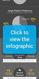 Multi-platform players are also 20% more likely to ever make a second payment, thus demonstrating a substantially higher LTV: 63% of multi-platform players make a second payment versus 52% among single-platform players. And while there isn’t a statistically significant difference between the payment amounts made by mobile and Web gamers, the average payment made by multi-platform players is 10% higher than that of single-platform players.