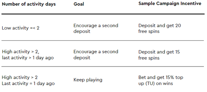Using this insight, you can divide new players into two groups. Then, adjust the level of incentives given to each group, based on their likelihood to remain active – providing those with multiple activity days lower incentives.