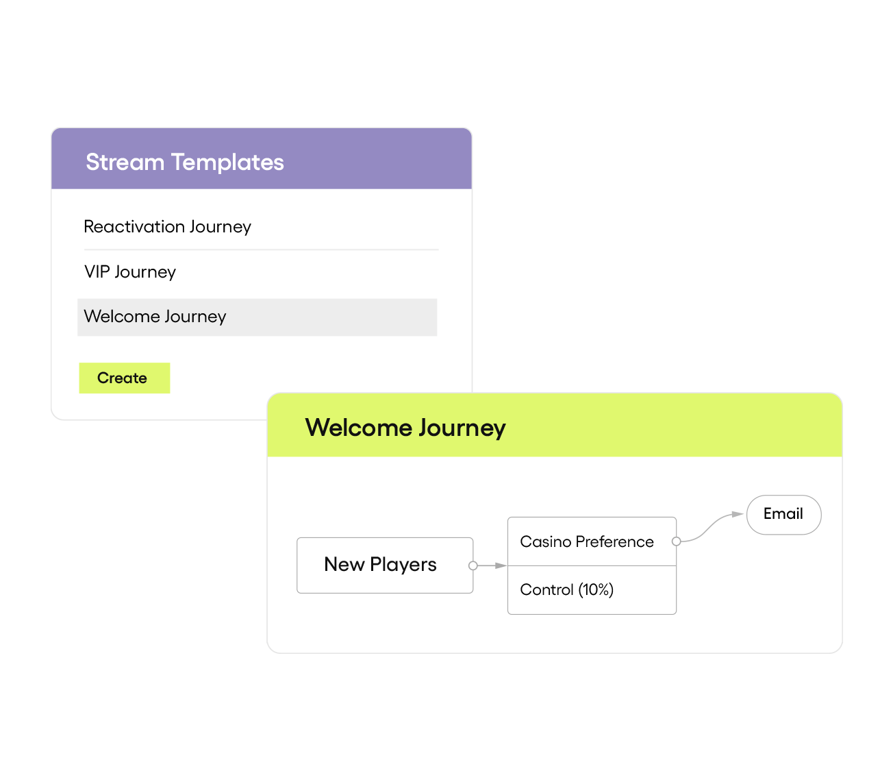 Drive player engagement with pre-built welcome and reactivation journeys, so you can launch faster, no technical support needed.