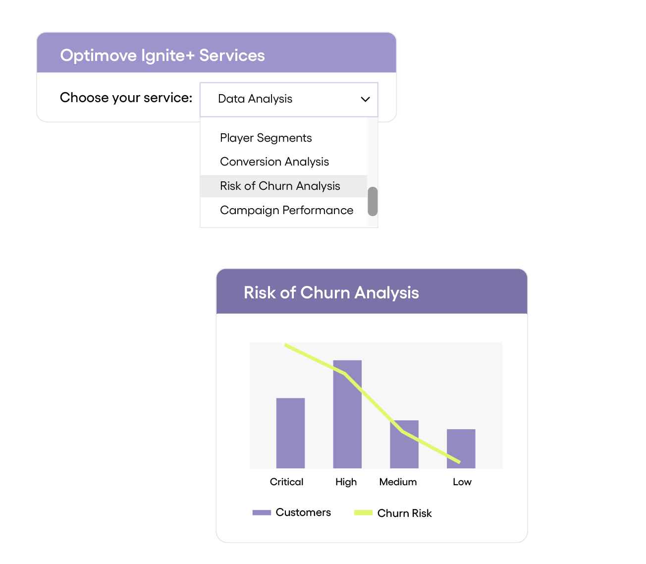Optimove Ignite+ provides iGaming and Sports betting emerging operators with hands-on guidance from Optimove’s gaming experts across CRM strategy, data analytics, and campaign execution. Optimove’s strategic advisors provide tailored solutions aligned with each operator's growth goals—such as player segmentation, KPI analysis, and marketing plans for major sports events, ensuring operators can plan, execute, and maximize results from day one.