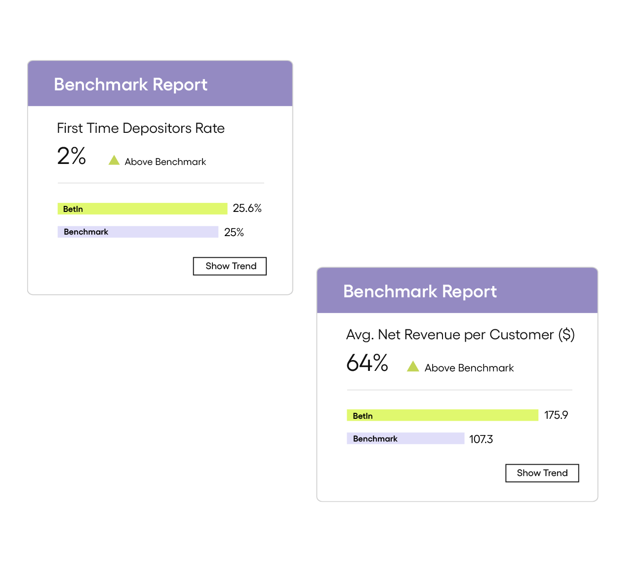 Gain exclusive access to benchmark reports based on hundreds of iGaming brands, with insights into key industry performance metrics.