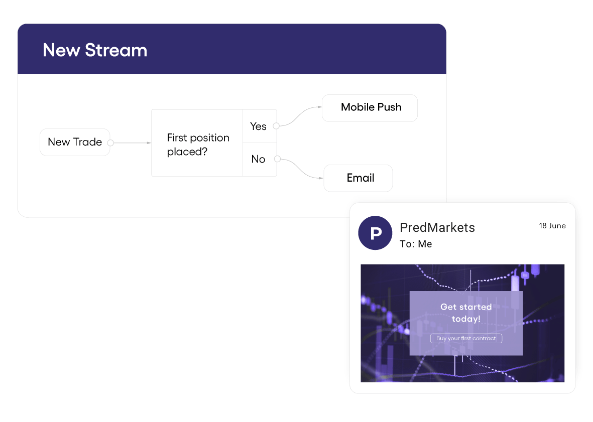 Transform raw trading data into personalized journeys to create sophisticated, lifecycle-driven engagement that drives user retention.